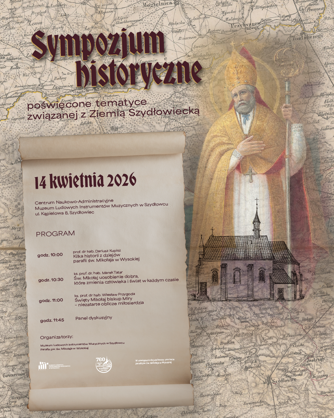 W Muzeum Ludowych Instrumentów Muzycznych w Szydłowcu odbędzie się sympozjum naukowe poświęcone historii i dziedzictwu Ziemi Szydłowieckiej. Wydarzenie zaplanowano na 14 kwietnia 2026 roku o godzinie 10:00 w Centrum Naukowo-Administracyjnym przy ul. Kąpielowej 8. Udział w spotkaniu jest bezpłatny, jednak obowiązuje wcześniejsza rezerwacja miejsc.