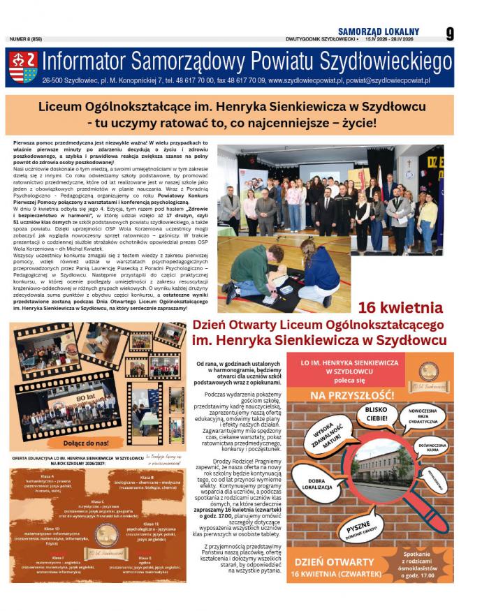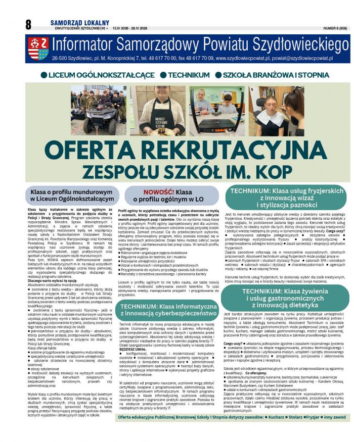 Informator Samorządowy Powiatu Szydłowieckiego z nr 8 Dwutygodnika Szydłowieckiego, z 15 kwietnia 2026 r.