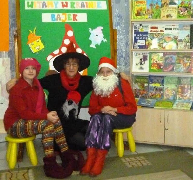 Oprócz tego bibliotekarka zaprosiła dzieci z oddziału przedszkolnego do "Świata krasnali". Przy piosence "My jesteśmy krasnoludki" przedszkolaki uczestniczyły również w zabawach ruchowych z krasnalami. Obdarowano ich kolorowankami i specjalnymi odznakami. Biblioteczne spotkanie zorganizowała Maria Sasal.