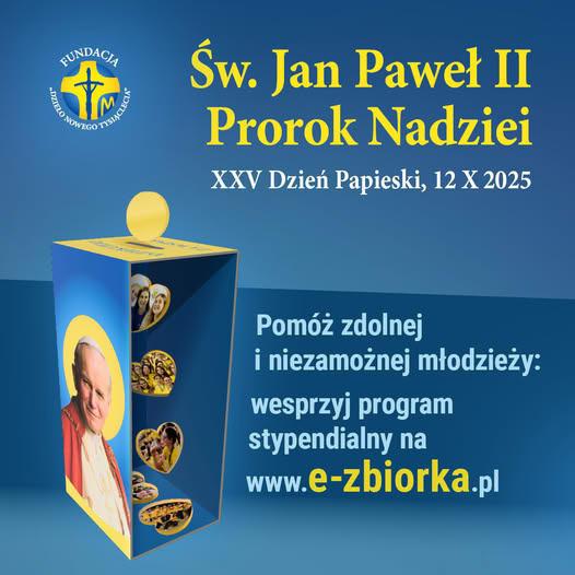 Fundacja Dzieło Nowego Tysiąclecia działa na rzecz upamiętnienia św. Jana Pawła II i propagowania jego nauk, głównie wśród młodego pokolenia. Program stypendialny wspiera uzdolnioną młodzież z biednych rodzin z małych miejscowości. Organizuje obozy wakacyjne, Dzień Papieski i przyznaje Nagrody TOTUS TUUS dla promujących wartości chrześcijańskie. Możesz wesprzeć fundację modlitwą albo wpłatą na konto, pomagając w tworzeniu żywego pomnika Papieża Polaka.