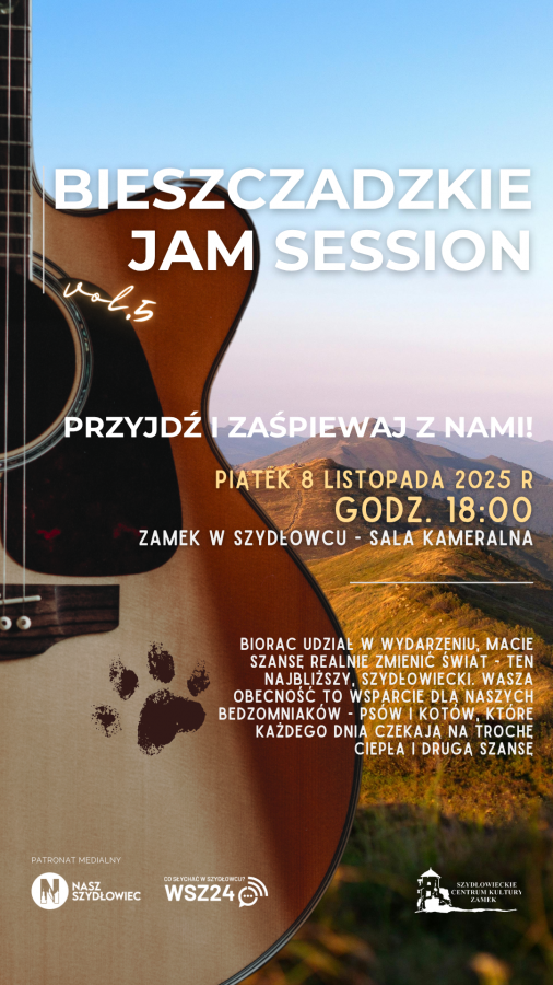 Bieszczadzkie Jam Session (BJS) to nie tylko koncert, ale także wyjątkowe spotkanie pasjonatów muzyki. Na scenie widzimy zarówno doświadczonych artystów, jak i tych dopiero rozpoczynających swoją przygodę z brzmieniami. Tutaj liczy się wspólna radość z grania i tworzenia bez rywalizacji. To autentyczna muzyka płynąca bezpośrednio z serca. Wydarzenie nie tylko pozwala na delektowanie się koncertem, ale także wsparcie potrzebujących zwierząt. W trakcie BJS zbierane będą środki na Stowarzyszenie Bezdomne z Szydłowca, które troszczy się o lokalne bezdomne zwierzęta. Zachęcamy wszystkich do przyniesienia ze sobą drobnych datków – każda złotówka to realna pomoc dla czworonogich przyjaciół. Wstęp jest darmowy i otwarty dla wszystkich – zarówno dla wykonawców, jak i fanów, którzy przybywają, by delektować się muzyką i pozytywną atmosferą.