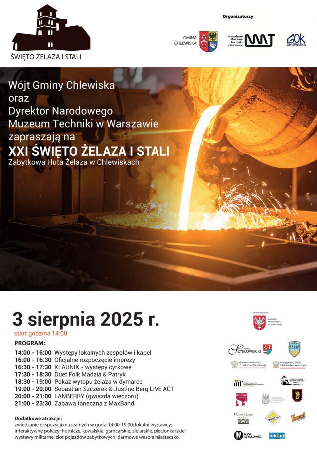 Zapraszamy na zdjęcia z XXI Święta Żelaza i Stali, które odbyło się w Zabytkowej Hucie Żelaza w Chlewiskach. To wyjątkowe wydarzenie łączyło tradycje hutnicze z artystycznymi występami i pokazami rzemiosł. W programie znalazły się koncerty, pokazy wytopu żelaza, występy cyrkowe oraz stoiska gastronomiczne i zabawa taneczna. To idealna okazja do odkrycia historii i kultury regionu!