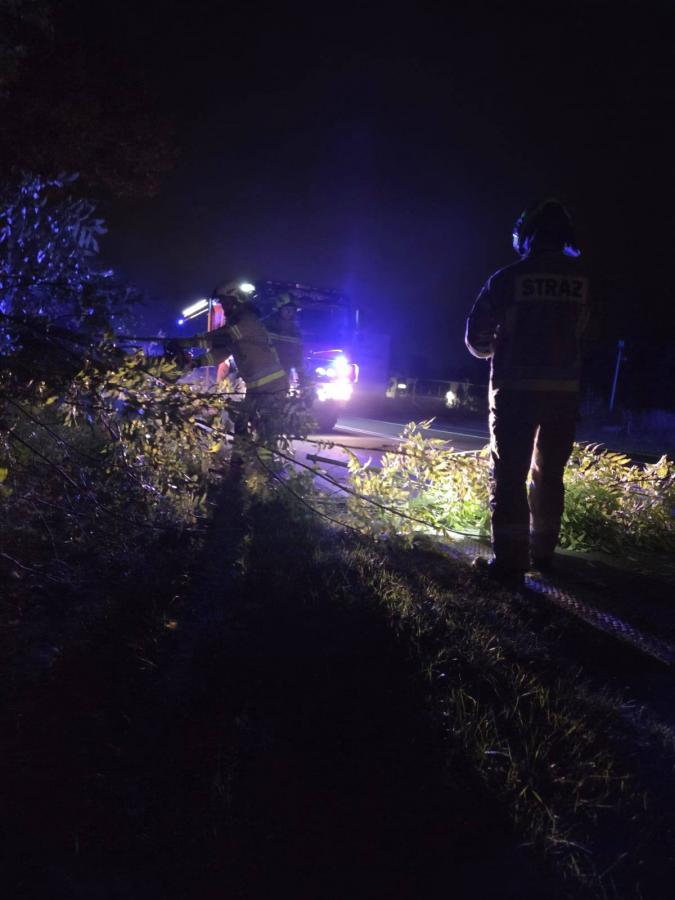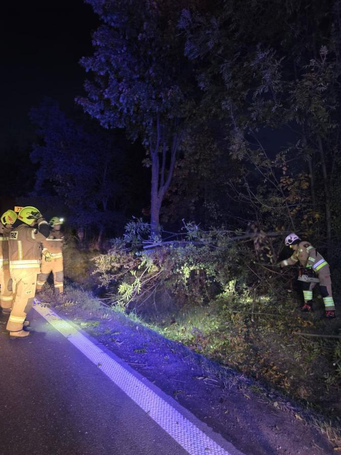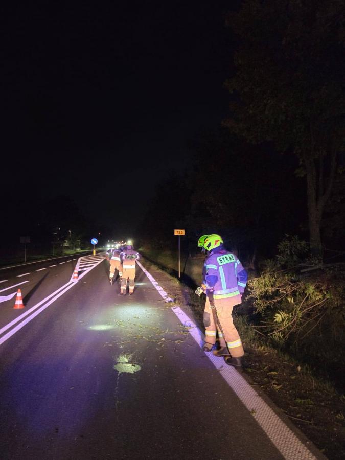 Galeria: 1. Zdjęcie jednostki OSP Orońsko w drodze na miejsce zdarzenia. 2. Obraz przedstawiający powalone drzewo na drodze wojewódzkiej nr 735. 3. Fotografia akcji usuwania drzewa przez strażaków przy użyciu pilarki. 4. Zdjęcie odblokowanej drogi po zakończonej akcji ratunkowej. W piątkowy wieczór jednostka OSP Orońsko interweniowała, aby usunąć powalone drzewo z drogi nr 735. Dzięki sprawnym działaniom strażaków udało się szybko przywrócić normalny ruch na jezdni. Akcja zakończyła się sukcesem, a droga została bezpiecznie odblokowana dla użytkowników.