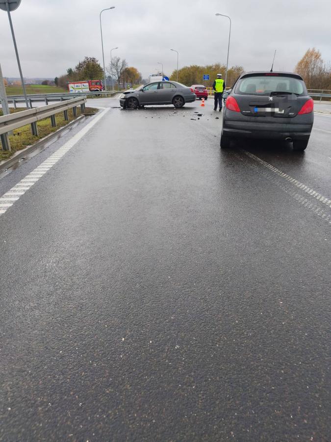 Zdjęcia Dwa auta zderzyły się na wiadukcie nad S7 – dwie osoby trafiły do szpitala - fotorelacja