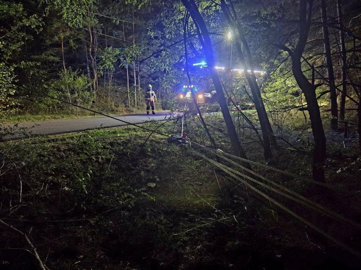 Akcja ratunkowa z udziałem strażaków OSP KSRG Orońsko i innych służb w miejscowości Helenów po wypadku samochodowym, gdzie pojazd uderzył w słup energetyczny. Działania ratownicze trwały ponad trzy godziny i obejmowały zabezpieczenie terenu, odłączenie akumulatora, usunięcie słupa z lini elektrycznych oraz transport poszkodowanej do szpitala. W akcji uczestniczyły także JRG Szydłowiec, Policja, Zespół Ratownictwa Medycznego i pogotowie energetyczne. Dzięki skutecznej współpracy służb sytuacja została opanowana, a bezpieczeństwo przywrócone.