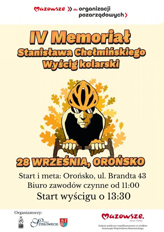 Zapraszamy do obejrzenia zdjęć z poprzednich edycji IV Memoriału Stanisława Chełmińskiego – Orońsko organizowanego przez Stowarzyszenie Odnowy i Rozwoju Gminy Orońsko. Wydarzenie cieszy się honorowym patronatem Starosty Powiatu Szydłowieckiego, co podkreśla jego lokalne znaczenie. Tegoroczna edycja, planowana na 28 września 2025 roku, oferuje trasę o długości do 60 km. Szczegóły trasy już wkrótce!
