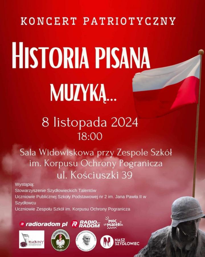 Zapraszamy na koncert patriotyczny Historia pisana z muzyką! Odbędzie się 8 listopada o godz. 18.00 w Zespole Szkół im. Korpusu Ochrony Pogranicza. Na scenie Stowarzyszenie Szydłowieckich Talentów oraz uczniowie szkół podstawowych i średnich, którzy zaprezentują wyjątkowe utwory. Zobacz galerię zdjęć z tego wyjątkowego wydarzenia!