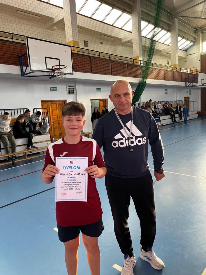 Galeria zdjęć prezentująca zwycięską drużynę koszykarzy z PSP nr 2, która będzie reprezentować powiat szydłowiecki w półfinałach międzypowiatowych Ziemi Radomskiej. Zespół, składający się z utalentowanych zawodników i prowadzony przez trenera Grzegorza Nowaka, może być dumny ze swojego osiągnięcia. Gratulujemy i życzymy powodzenia w kolejnych rozgrywkach!
