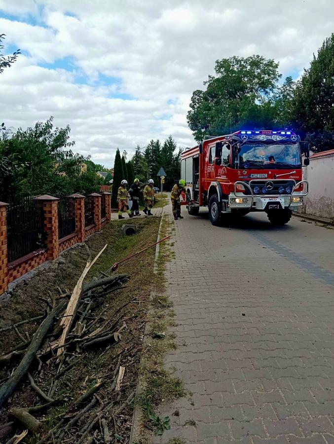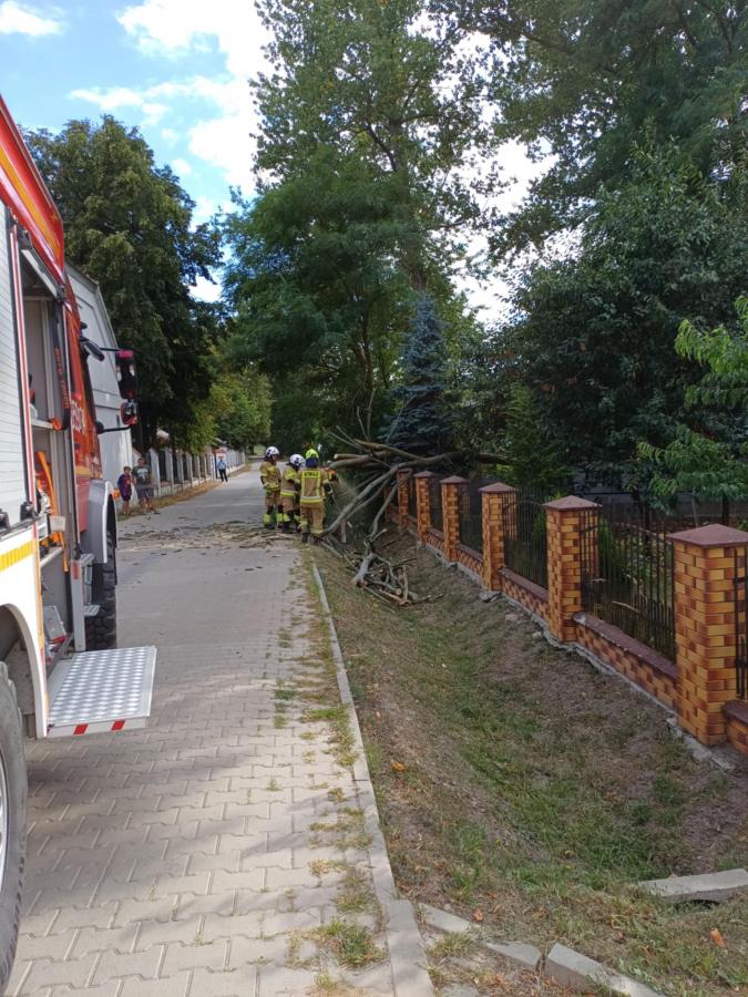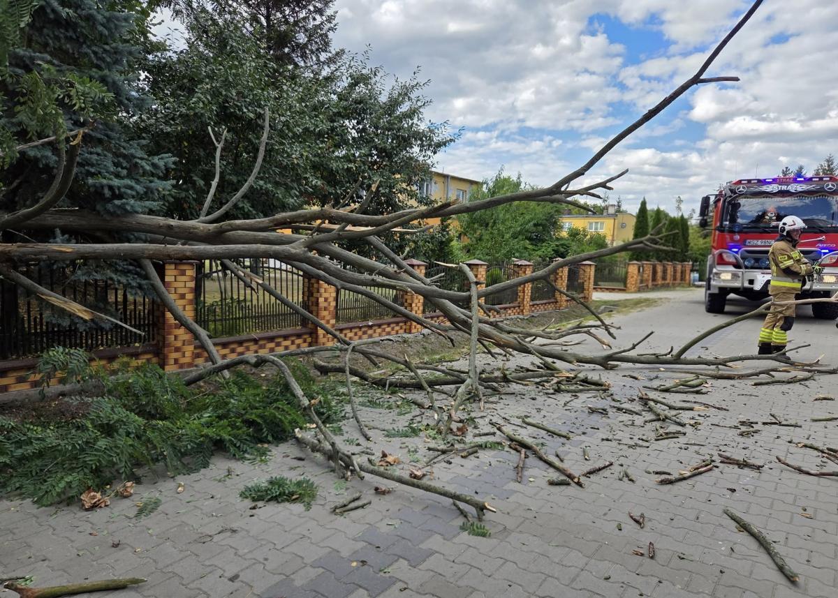 Galeria zdjęć przedstawia akcję strażaków z OSP Orońsko, którzy usuwali powalone drzewo blokujące ulicę Topolową w Orońsku. Widać na nich moment przybycia na miejsce, wszczęcie działań operacyjnych, pocięcie drzewa, udrożnienie jezdni oraz ostateczny efekt - czystą i bezpieczną drogę. Można zobaczyć zaangażowanie strażaków oraz profesjonalizm w działaniu.