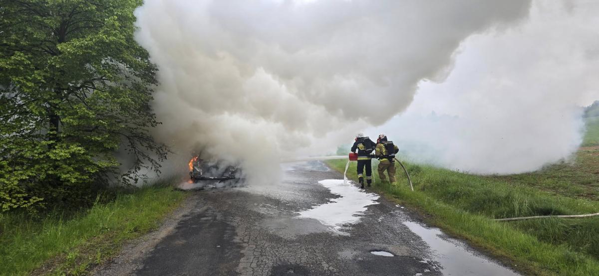 Galeria zdjęć z akcji gaśniczej po pożarze samochodu w miejscowości Omięcin. Strażacy z Ochotniczej Straży Pożarnej w Wysokiej oraz Jednostki Ratowniczo-Gaśniczej z Szydłowca skutecznie stłumili ogień i ochronili pobliskie tereny. W akcji udział brała również Policja. Dzięki sprawnemu działaniu ratowników, kierowca opuścił pojazd bez uszczerbku na zdrowiu.