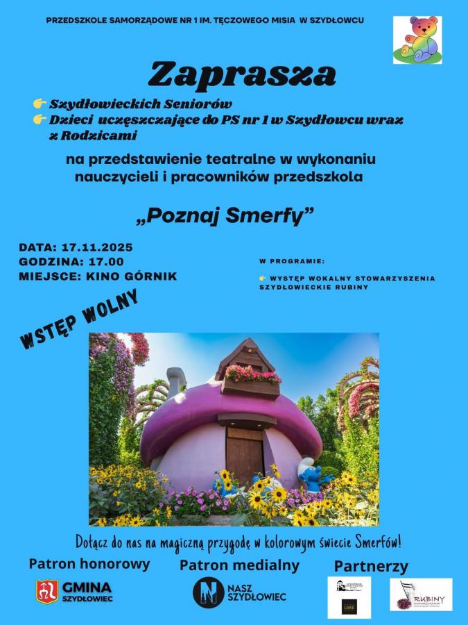 Smerfy na scenie w Szydłowcu – wyjątkowe przedstawienie dla seniorów i dzieci