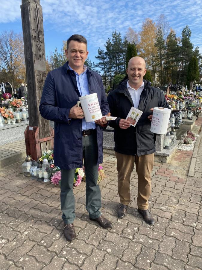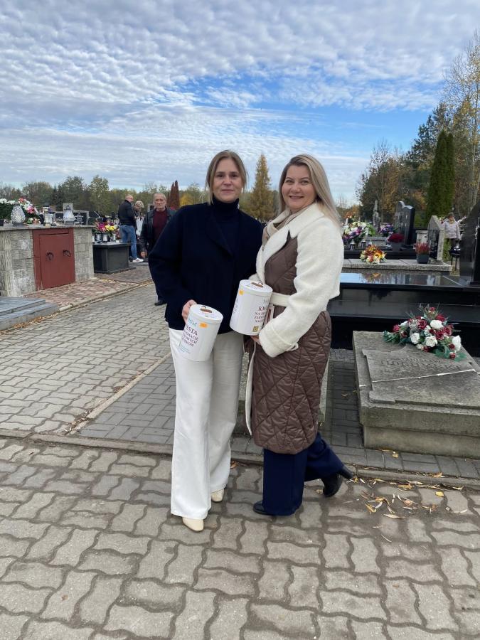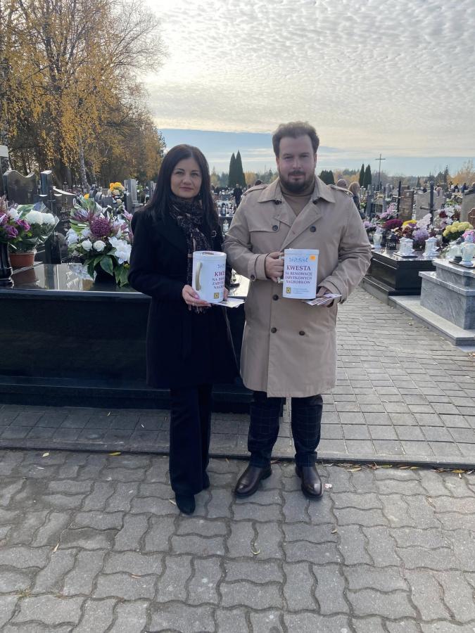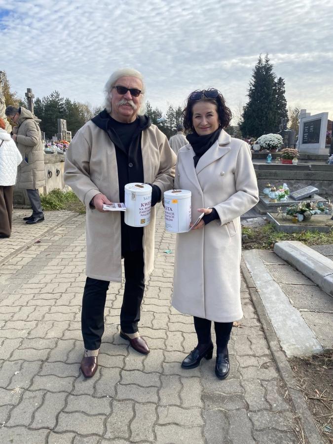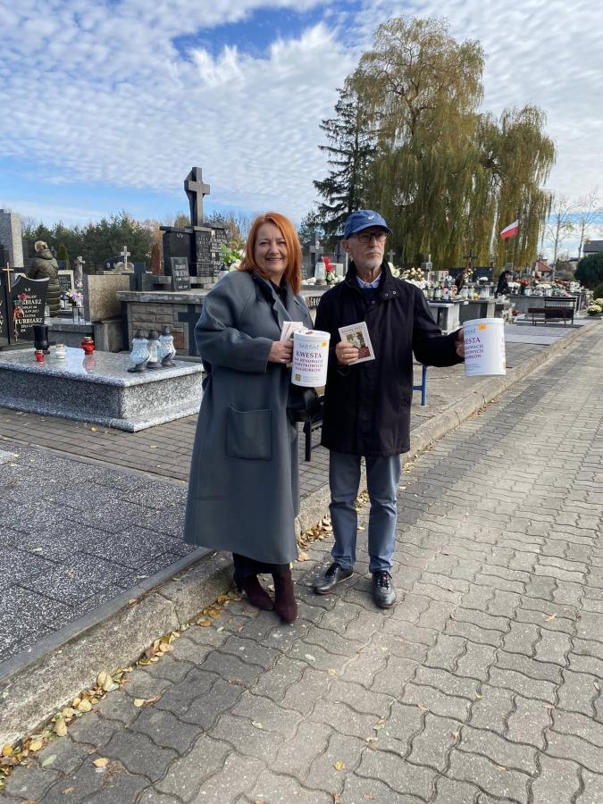 Galeria zdjęć z kwesty zorganizowanej na cmentarzu parafialnym w Szydłowcu 1 listopada 2025 roku. Zebrano 11 632,48 zł, w tym 23,10 euro i 1,60 franków szwajcarskich. Organizatorzy, Stowarzyszenie NRR Sz-ca, podziękowali wszystkim za wsparcie i zaufanie. Zebrane środki zostaną przeznaczone na odnowę zabytkowych nagrobków, ratując cenne pomniki przed zniszczeniem. Dzięki solidarności i zaangażowaniu można przywracać pamięć o przeszłości i dbać o dziedzictwo. Na zdjęciach również członkowie komisji, kwestujący wolontariusze oraz darczyńcy, którzy przyczynili się do sukcesu akcji charytatywnej.
