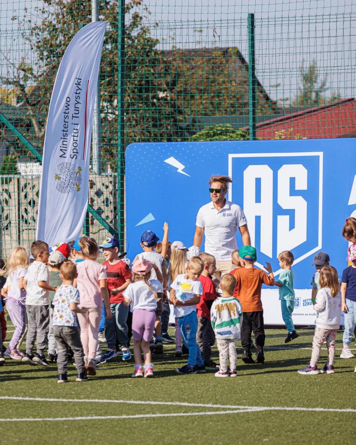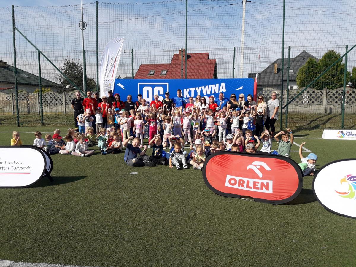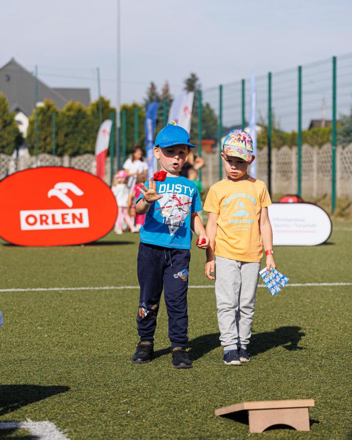 Wydarzenie sportowe dla młodych talentów w Gminie Orońsko, otwarte przez Wójta i Gminnego Animatora Sportu. Ponad 100 przedszkolaków wzięło udział w zawodach, rozwijając umiejętności sportowe i ucząc się pierwszej pomocy. Zdjęcia ukazują radość, zaangażowanie i naukę podczas atrakcyjnych stacji sportowych oraz edukacyjnych. Aktywna Szkoła to inicjatywa Ministerstwa Sportu i Turystyki, promująca aktywność fizyczną wśród dzieci, młodzieży i dorosłych.