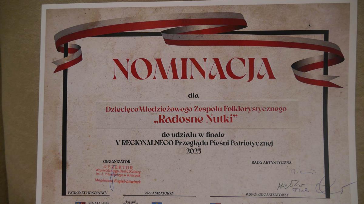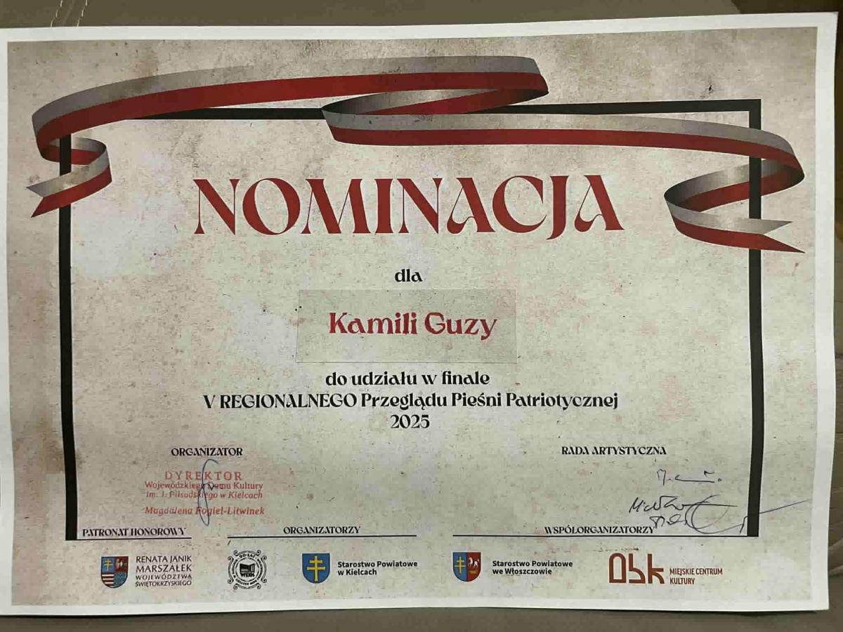 W Wojewódzkim Domu Kultury im. Józefa Piłsudskiego w Kielcach odbyły się emocjonujące eliminacje do V Regionalnego Przeglądu Pieśni Patriotycznej. Wyjątkowe występy Zespołu Radosne Nutki oraz solistek: Solomiji Siczkoriz, Dominiki Dygas i Kamili Guzy poruszyły publiczność. Po przesłuchaniach jury ogłosiło finalistów, którzy wystąpią 26 października w finale. Wśród nich znaleźli się: Radosne Nutki, Dominika Dygas oraz Kamila Guza. Gratulujemy wszystkim wykonawcom za pasję i wzruszające interpretacje patriotycznych pieśni. Wspaniała atmosfera i zaangażowanie uczestników sprawiły, że wieczór był niezapomniany.