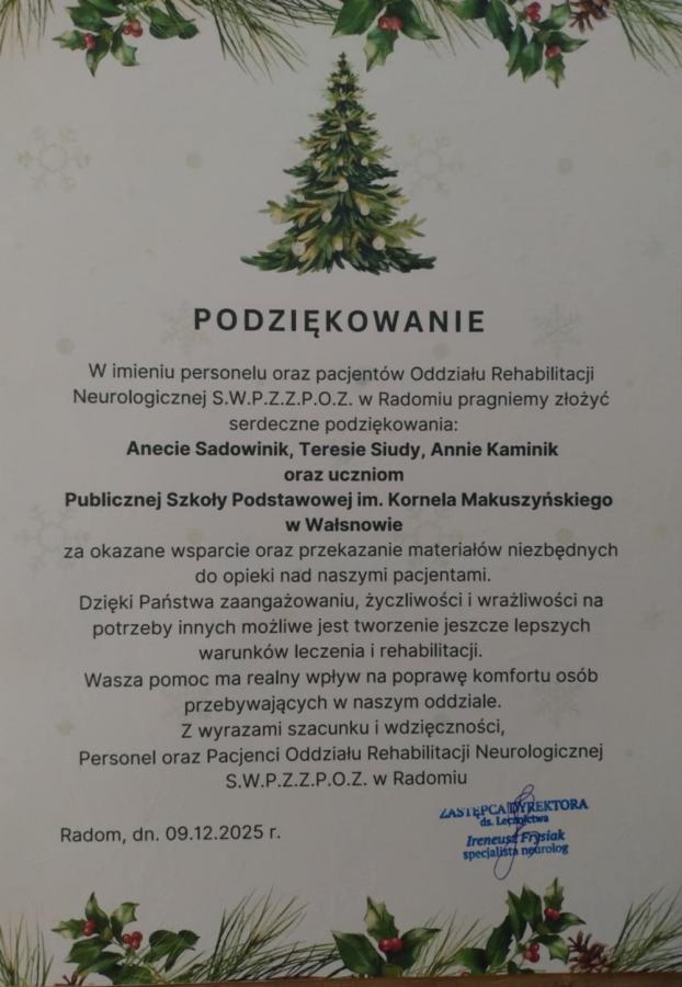 Uczniowie Szkoły Podstawowej w Wałsnowie odwiedzili Oddział Rehabilitacji Neurologicznej w Radomiu