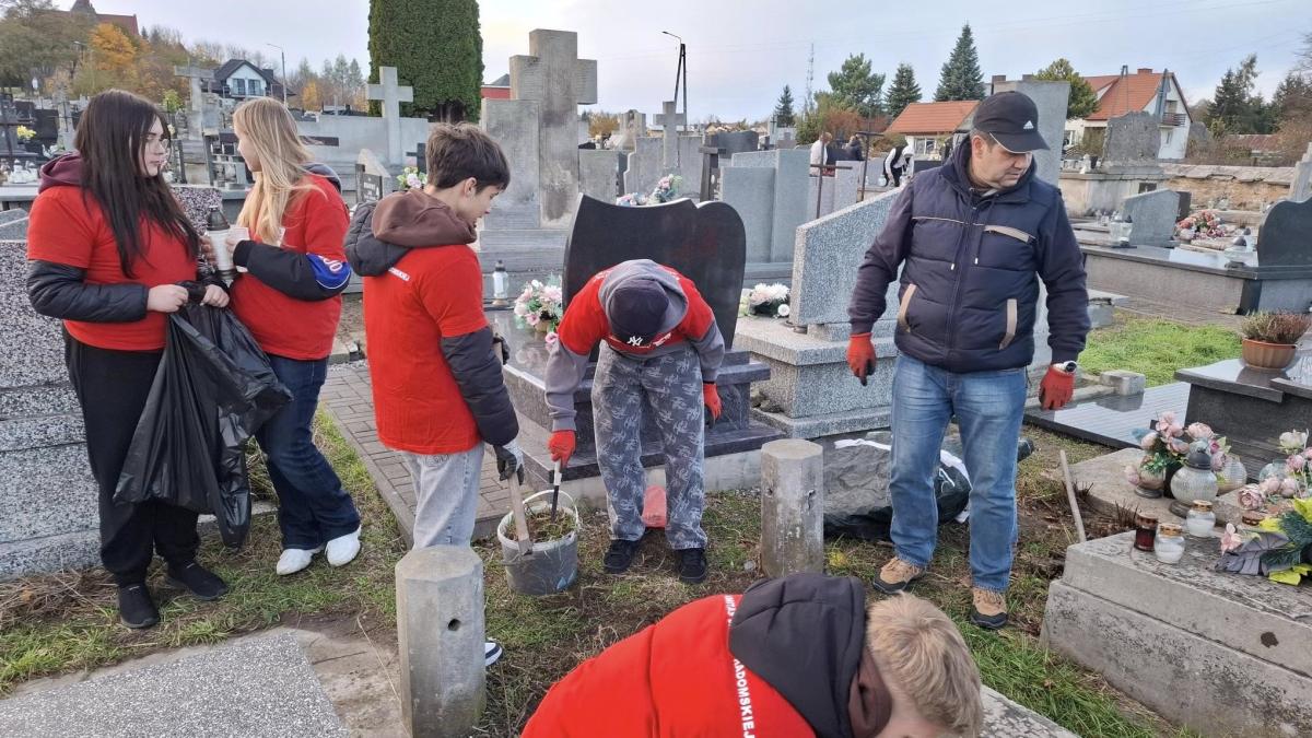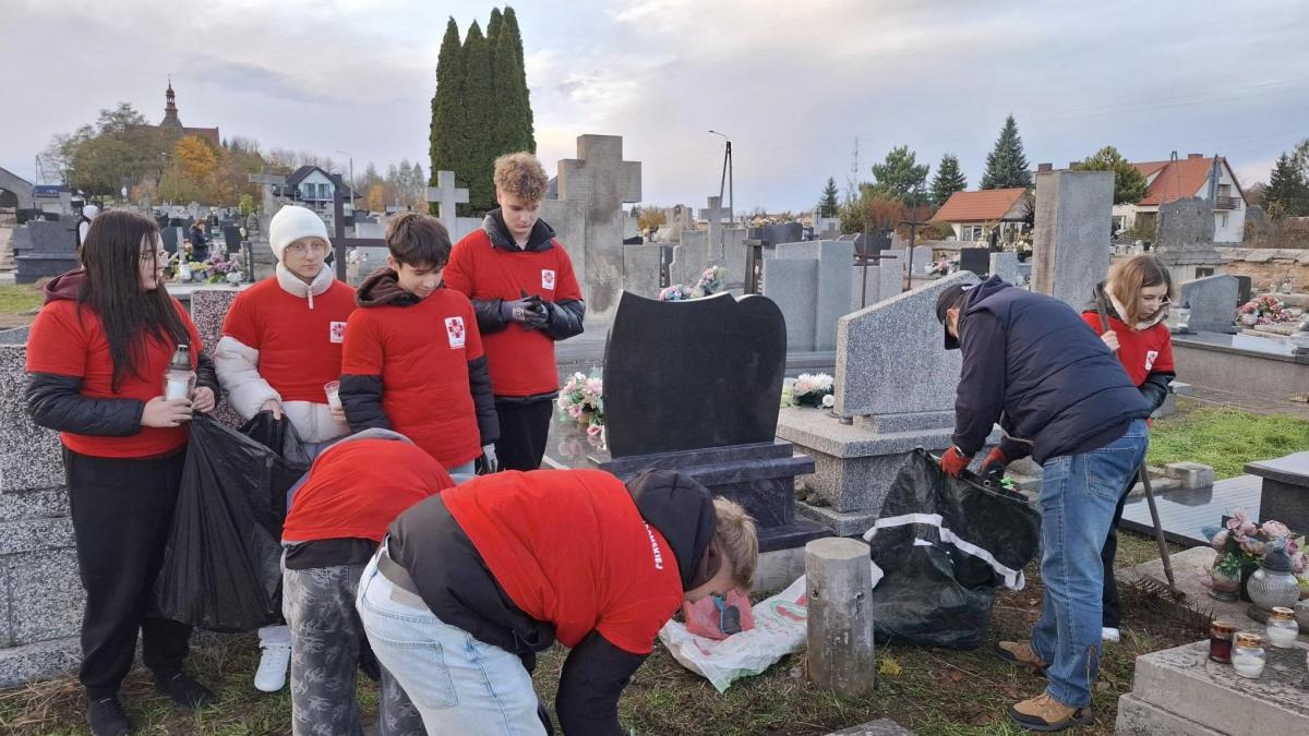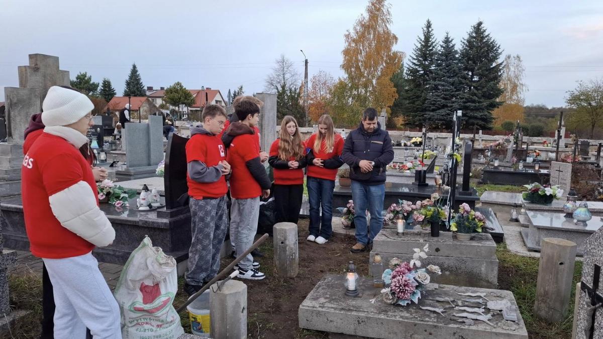 Wolontariusze Szkolnego Koła Caritas w Gąsawach Rządowych uczestniczyli w uporządkowaniu grobów na cmentarzu parafialnym w Jastrzębiu. Młodzież usuwała liście, chwasty i gałęzie, zapalając znicze i wspólnie się modląc. Ta akcja nie tylko pielęgnuje pamięć zmarłych, lecz także uczy empatii, szacunku i solidarności. Uczniowie pokazali, że troska o tych, którzy odeszli, może przejawiać się w czynach, nie tylko w słowach i modlitwie.